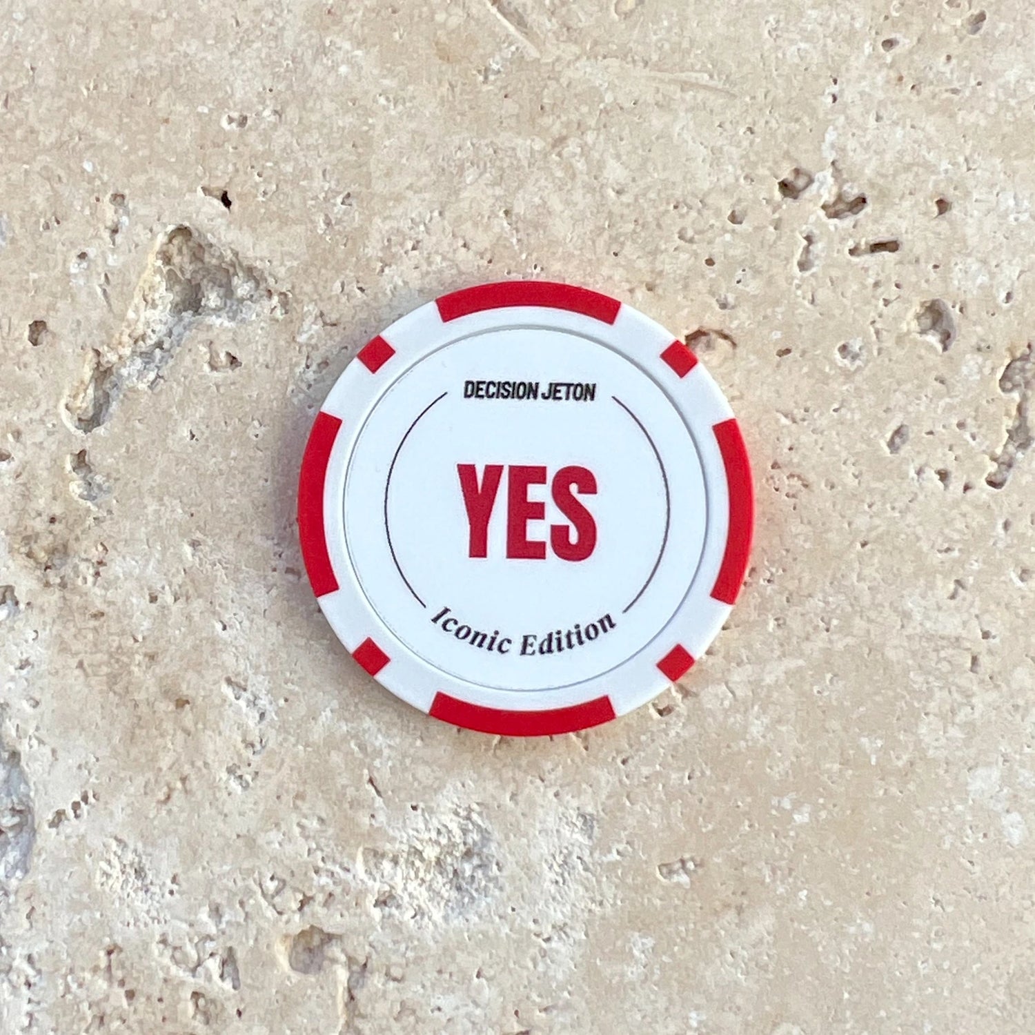 A decision coin in form of a poker jeton. Using the "Decision Jeton®" (DJ) is a playful and intuitive way of decision-making.